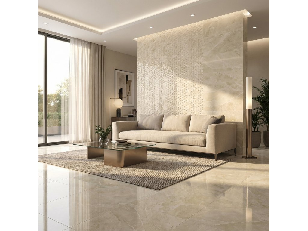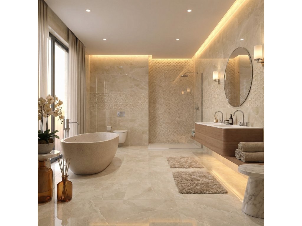 Béžový obklad v imitaci mramoru Ariana Beige nabízí elegantní a stále oblíbeným designem.