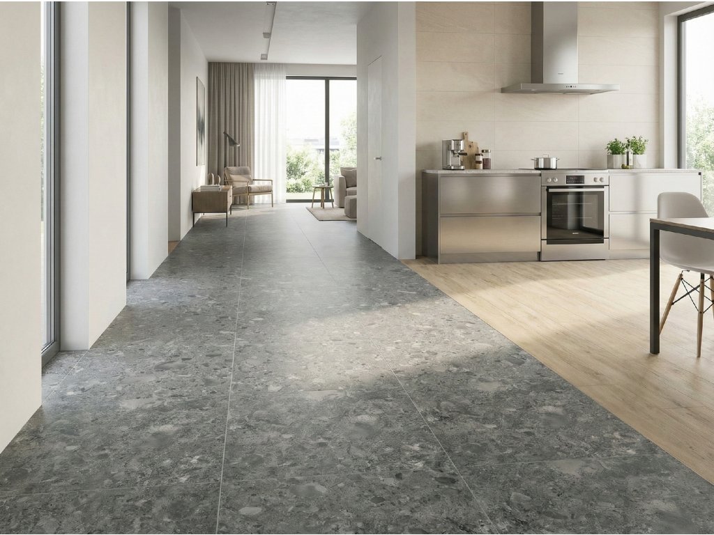 Dlažby Atacama od výrobce Rako jsou moderní slinutá dlažba s nízkou nasákavostí, která díky odolnému střepu funguje stejně dobře v interiéru i venku. V nabídce najdete formát 60x60 cm a čtyři nadčasové odstíny: béžová, černá, šedá a bílošedá. Jako dlažba imitace kamene zaujme výraznou kamennou kresbou, která působí přirozeně a dlouhodobě reprezentativně; zároveň ji lze použít i jako obklady imitace kamene na stěnu. Povrch s protiskluzností R9/A je ideální do běžně zatěžovaných zón, kde chcete bezpečný pohyb, ale také snadný úklid bez zbytečné námahy. Otěruvzdornost PEI IV (mimo černé varianty) z ní dělá spolehlivou volbu i do frekventovaných prostor: dlažba do chodby a předsíně, dlažba do kuchyně i dlažba do koupelny. Díky přesnému zpracování skvěle funguje i jako kalibrovaná dlažba pro čisté, rovné spáry. Atacama se hodí také jako venkovní dlažba – například dlažba na balkon – a výborně ladí s dekory dřeva (kategorie „dlažba imitace dřeva“ / „obklady imitace dřeva“) i s bílými sériemi („obklady System“ nebo „bílé dlažby Blank“).