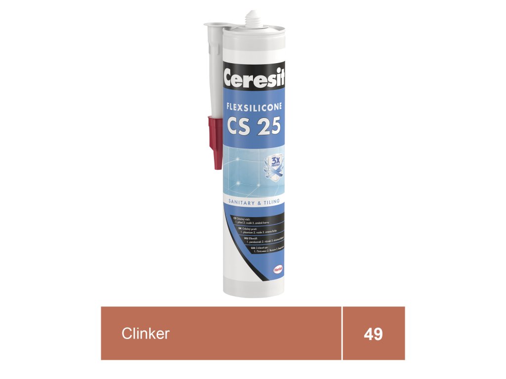 Sanitární silikon Ceresit CS 25 SANITARY ve vyobrazené clinker barvě je určen pro vyplnění dilatačních a spojovacích spár mezi keramickými obklady a dlažbami v rozích nebo ve styku stěn, podlah a k usazování zařizovacích předmětů v sanitární oblasti. Je určen k vyplňování spár tam, kde běžné spárovací hmoty vykazují trhliny a praskliny. Díky trvalé elasticitě a odolnosti proti vodě je vhodný do oblastí trvale zatížených vlhkostí, jako např.: kuchyně, sprchy, koupelny, toalety, balkóny, terasy apod. Sanitární silikon Ceresit CS 25 SANITARY s recepturou MicroProtect obsahuje v porovnání s dosud standartním silikonům trojnásobné množství protiplísňových přísad a díky efektu Aquastatik zaručuje, že se na povrchu cementových spár nemůže držet voda, čímž poskytuje dlouhodobou ochranu proti vzniku plísní a jejich působení. Spáry tak zůstávají čisté a zdraví neškodné. Materiál má vynikající přídržnost k suchým i nesavým podkladům jako sklo, keramika, porcelán, pórovina, email apod. Není vhodný pro použití v nádržích na pitnou vodu a pro lepení akvárií, zrcadel a kovů podléhajících korozi (jako olovo, zinek, měď, železo).