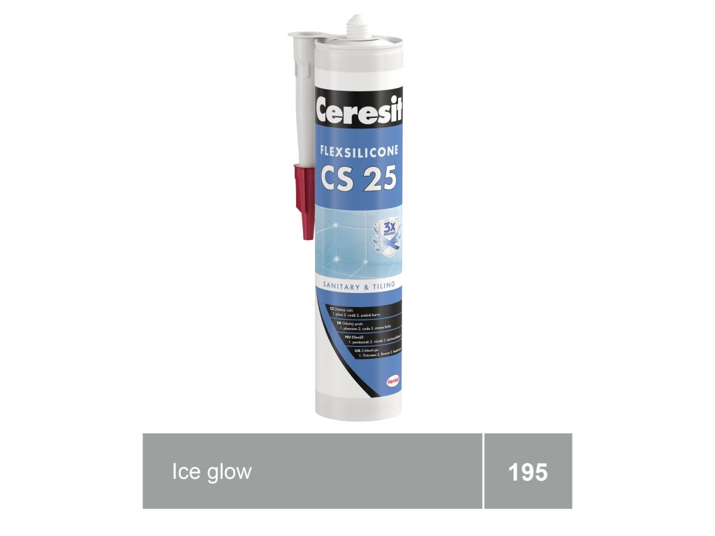 Sanitární silikon Ceresit CS 25 ve vyobrazené ice glow barvě je určen pro vyplnění dilatačních a spojovacích spár mezi keramickými obklady a dlažbami v rozích nebo ve styku stěn, podlah a k usazování zařizovacích předmětů v sanitární oblasti. Je určen k vyplňování spár tam, kde běžné spárovací hmoty vykazují trhliny a praskliny. Díky trvalé elasticitě a odolnosti proti vodě je vhodný do oblastí trvale zatížených vlhkostí, jako např.: kuchyně, sprchy, koupelny, toalety, balkóny, terasy apod. Sanitární silikon Ceresit CS 25 SANITARY s recepturou MicroProtect obsahuje v porovnání s dosud standartním silikonům trojnásobné množství protiplísňových přísad a díky efektu Aquastatik zaručuje, že se na povrchu cementových spár nemůže držet voda, čímž poskytuje dlouhodobou ochranu proti vzniku plísní a jejich působení. Spáry tak zůstávají čisté a zdraví neškodné. Materiál má vynikající přídržnost k suchým i nesavým podkladům jako sklo, keramika, porcelán, pórovina, email apod. Není vhodný pro použití v nádržích na pitnou vodu a pro lepení akvárií, zrcadel a kovů podléhajících korozi (jako olovo, zinek, měď, železo).