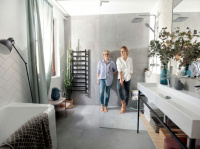 Dlažby Cemento od výrobce Rako jsou moderní dlažby imitace betonu, které přinášejí čistý industriální vzhled a zároveň praktické vlastnosti pro každodenní provoz. Série Cemento je dostupná ve dvou formátech 30x60 cm a 60x60 cm, takže snadno navrhnete jak kompaktní menší plochy, tak velkorysé, vizuálně klidné podlahy s minimem spár. Vybrat si můžete ze tří nadčasových odstínů: světle šedá, šedá a šedobéžová – barvy, které se dobře kombinují se dřevem, kamenem i jednobarevnými doplňky. Základem je nízkonasákavý střep, tedy slinutá dlažba, která patří mezi vysoce odolné materiály. Díky otěruvzdornosti PEI V skvěle zvládá intenzivní používání v domácnosti i ve frekventovanějších prostorách. Zároveň jde o mrazuvzdornou dlažbu, proto je vhodná třeba jako dlažba na balkon, kde musí povrch odolávat změnám teplot a vlhkosti. Povrch s protiskluzností R9 zajišťuje bezpečnost v běžně zatěžovaných zónách, kde není potřeba extrémní protiskluz, ale oceníte snadný úklid bez zbytečné námahy. Dlaždice jsou kalibrované (rektifikované), takže umožňují velmi efektivní pokládku se spárou 1,5–2 mm a výsledkem je elegantní, téměř jednolitá plocha. Cemento je využitelná nejen na podlahu jako dlažba do koupelny, ale také na stěny jako obklady imitace betonu – skvěle fungují i jako obklady do koupelny pro sjednocený, minimalistický vzhled.