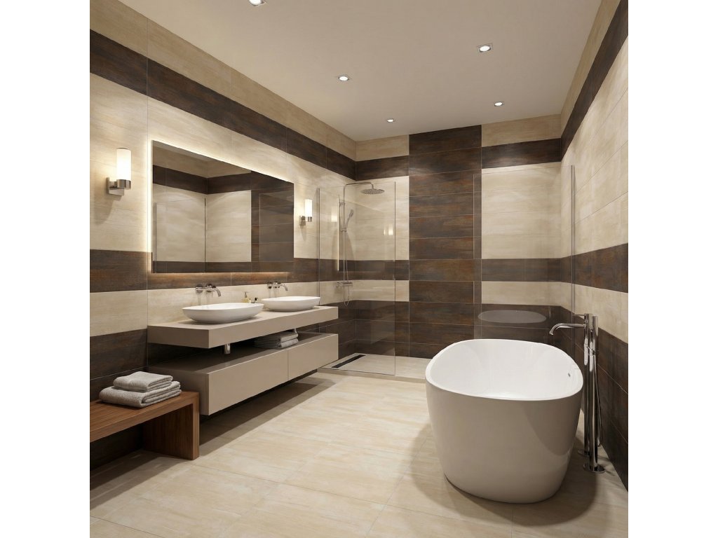 Obklady a dlažby Identity v zemitých barvách přinášejí do vašeho domova harmonii a eleganci. Tato kolekce kombinuje jemné odstíny béžové s hlubokou tmavě hnědou, což vytváří útulnou atmosféru ideální pro jakýkoli interiér. Série je navržena tak, aby se skvěle hodila jako interiérové obklady pro různé místnosti vašeho domova. Série Identity obsahuje dva unikátní dekory: první s proužky v béžovém a tmavě hnědém barevném provedení, který přidává dynamiku a styl, a druhý dekor v tmavě hnědém provedení se zajímavým motivem, který dodává prostoru hloubku a charakter. K tomu je součástí série i listela ve stejném designu jako uvedený dekor s proužky, která dokonale doplňuje celkový vzhled. Tyto obklady do koupelny přinášejí klid a relaxaci, zatímco v kuchyni vyniknou svou praktičností a estetikou. Díky své univerzálnosti jsou také ideální jako obklady do obýváku, kde vytvářejí příjemné prostředí pro setkávání s rodinou a přáteli. Tato série je dokonalou volbou pro ty, kteří hledají stylové a funkční řešení pro své interiéry.