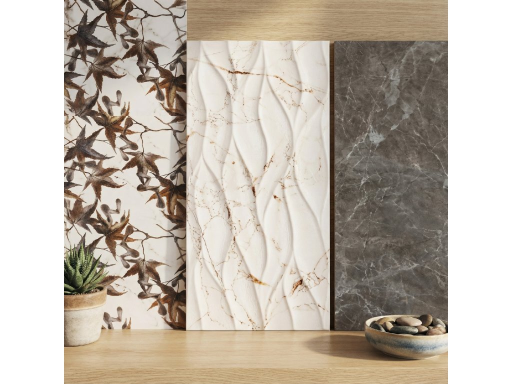 Obklady imitace mramoru Marquina s jemným žilkováním jsou nabízeny ve světlé i tmavé verzi. Obklady Marquina by neměly uniknout všem obdivovatelům kalibrovaných obkladů v imitaci mramoru. Mezi ostatními interiérovými obklady vyniká Marquina svým zpracováním dekorů s 3D efektem a zajímavě kontrastním dekorovaným obkladem s přírodními motivy. Časy, kdy se mramor používal pouze v koupelnách jsou tatam, proto můžete Marquinu využít nejen jako obklad do koupelny, ale směle s ní počítat i jako s obkladem do obýváku nebo obkladem do ložnice. Pro ucelené řešení fantasticky oživí Váš interiér dlažba imitace dřeva, která ideálně doplní obklady Marquina a dodá prostoru útulnou atmosféru. Vybírat můžete ze široké nabídky našeho e-shopu.