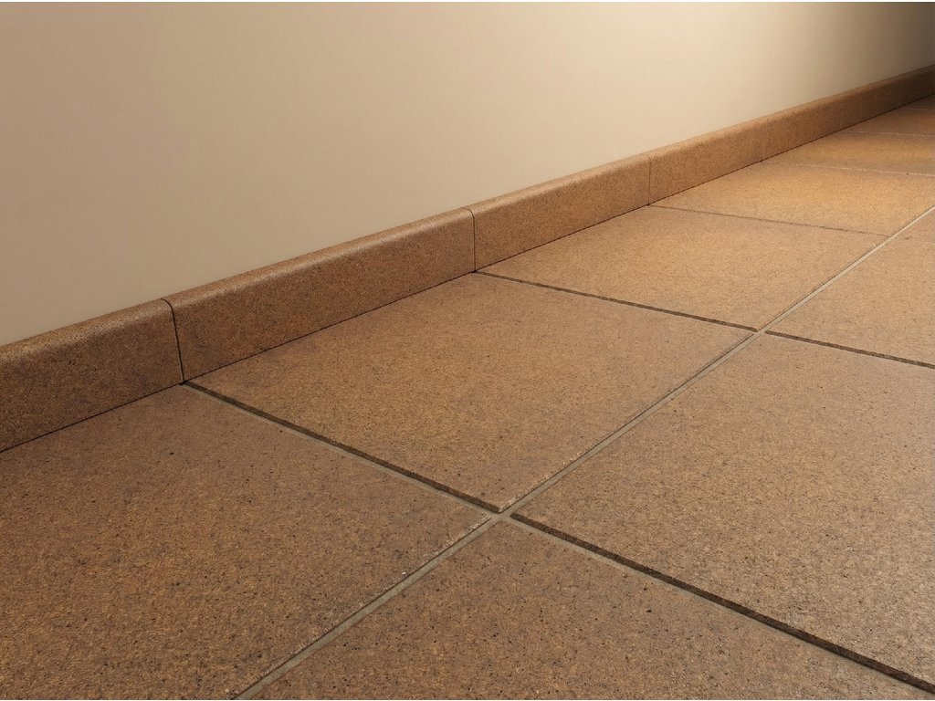 - Široká modularita formátů a doplňků v hnědých tónech pro jednotný vzhled dlažby, schodovek i soklů.
