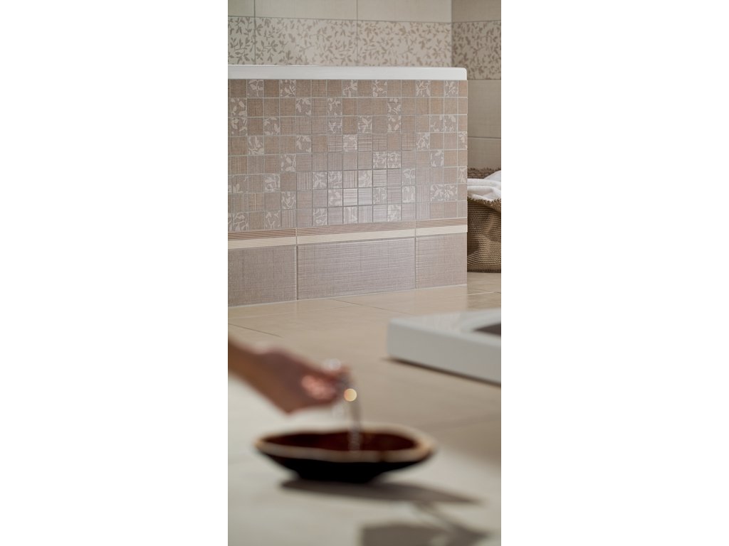 Obklad Textile WADMB101 připomíná povrchem hrubší tkanou textilii. Obklad je možné doplnit zajímavými dekoracemi a dlažbou Concept.